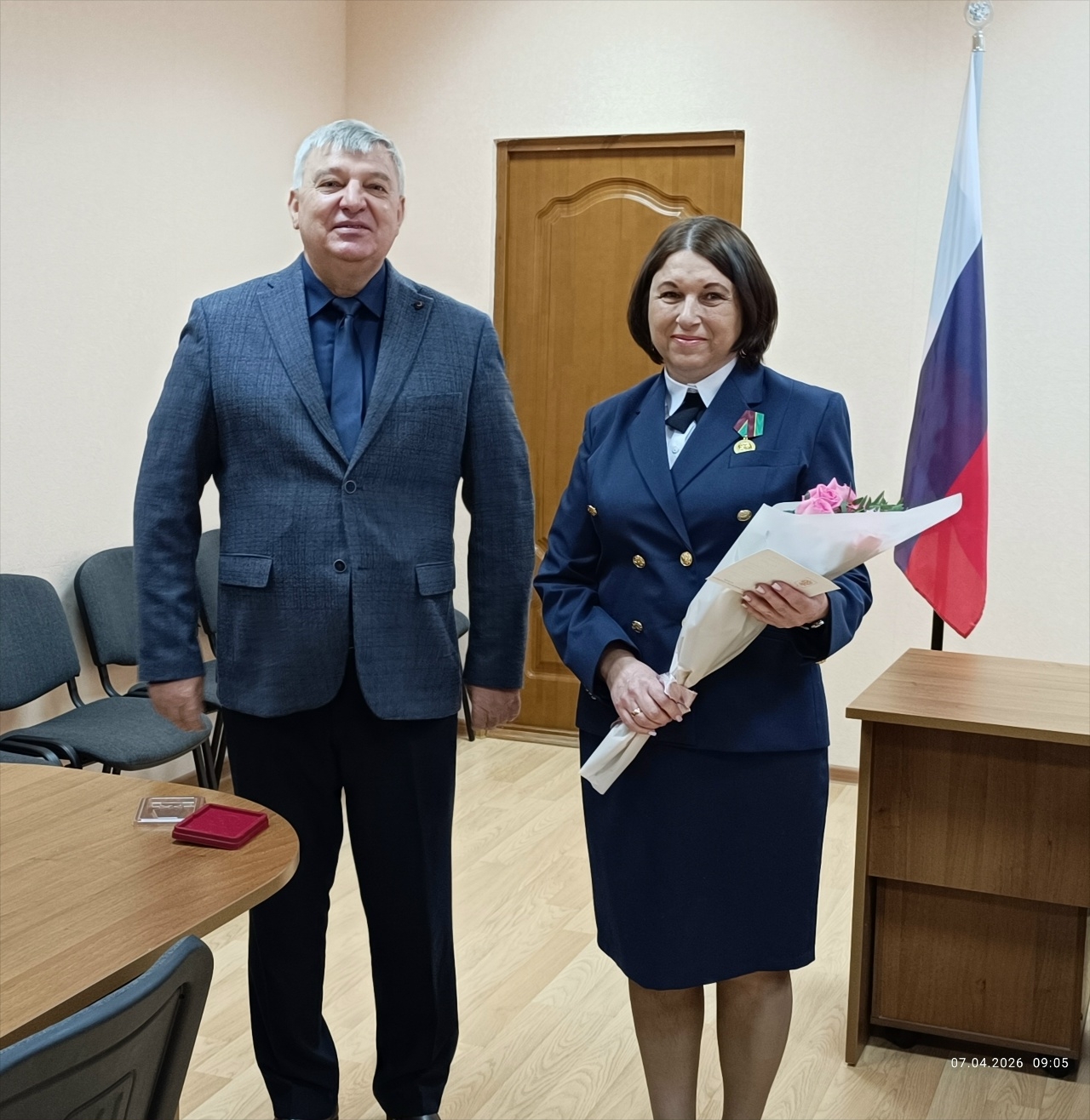 7 апреля 2026 года в Унечском районном суде врип председателя суда В.И. Клименко торжественно вручил старшему специалисту суда Т.А. Татуйко юбилейную медаль «100 лет Верховному Суду России», присвоенную за особые заслуги, добросовестный труд и вклад в развитии правосудия. Поздравляем Тамару Алексеевну с получением заслуженной награды и желаем крепкого здоровья, благополучия и профессиональных успехов! ![]() ![]() |